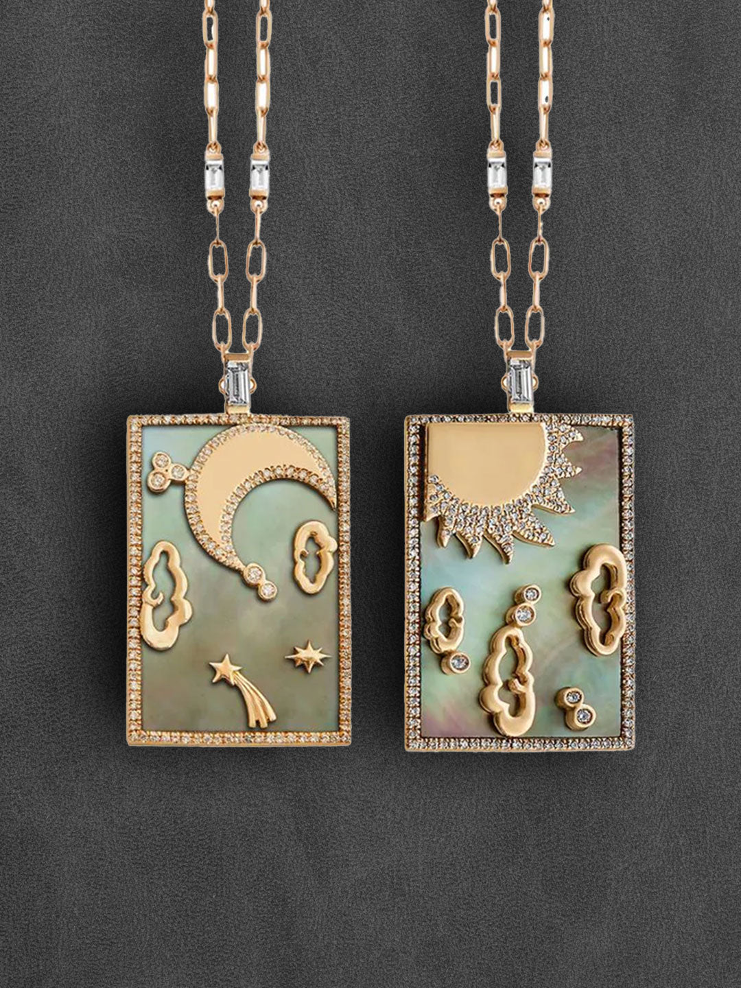 Tales & Treasures- 18K - Kaaba Silver Bar Pendant - 6 Baguettes