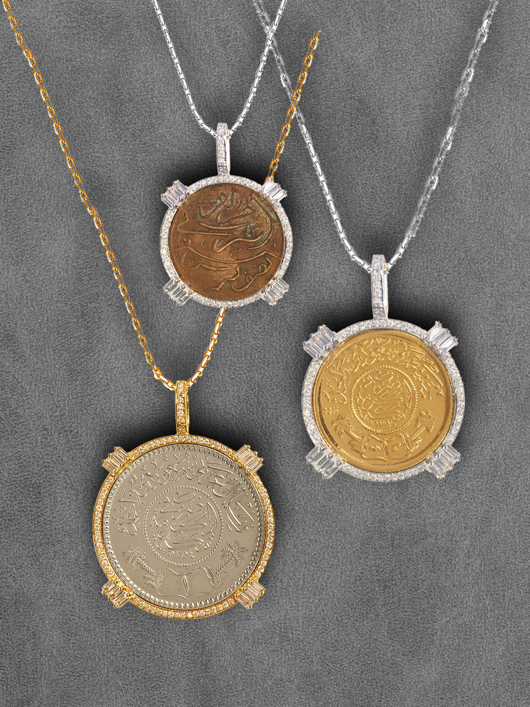 Tales & Treasures- 18K - Kaaba Silver Bar Pendant - 6 Baguettes