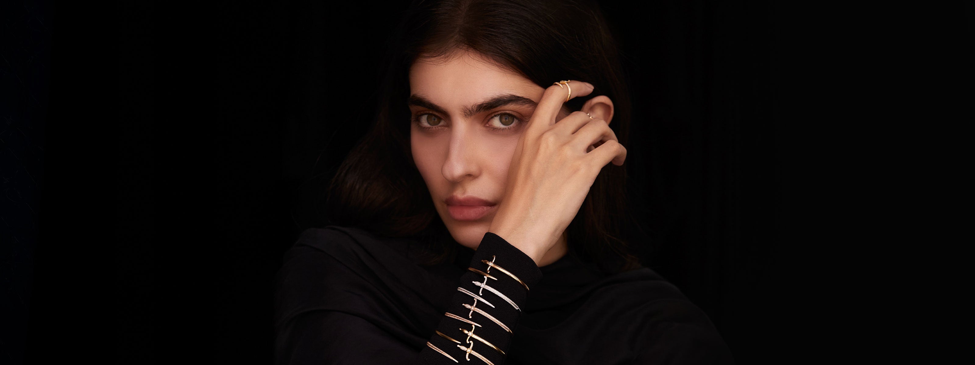 Swords of Love Cuff Bracelet - Paved - Black